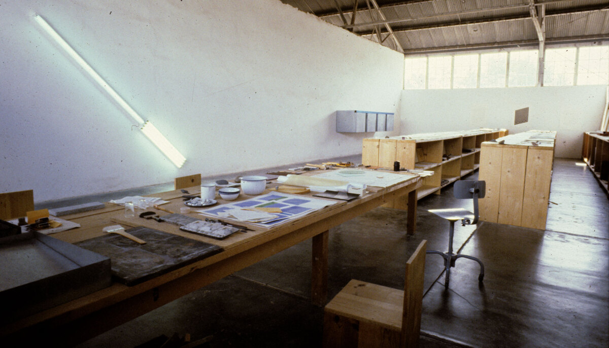 Nach den ersten Besuchen im Betrieb zeigte sich Judd von der hohen handwerklichen und technischen Präzision beeindruckt. Doris Lehni-Quarella richtete für Judd im Fabrikgebäude einen Arbeitsplatz ein und der beste Facharbeiter des Betriebs, Willi Bühler, stand ihm für einige Tage zur Verfügung. Über Nacht erfand Donald Judd eine Werkstruktur und das künstlerische Konzept liess sich konstruktiv realisieren. (Bild: «Multicolored Works» bei Lehni. Dübendorf, 1984)